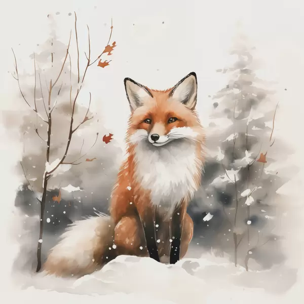 Poster Fuchsjunges in einem verschneiten Wald Nachahmung von Aquarell f42146