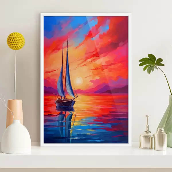 Poster Segelboot auf dem Hintergrund eines hellen Sonnenuntergangs Nr f42151