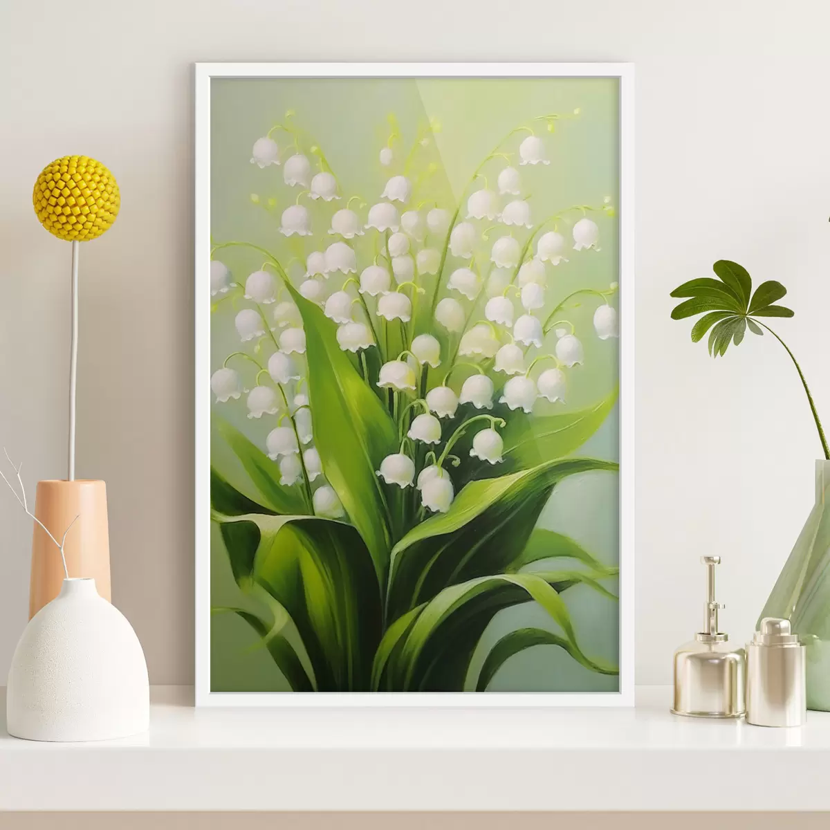 Poster Maiglöckchen auf zartgrünem Hintergrund f42160