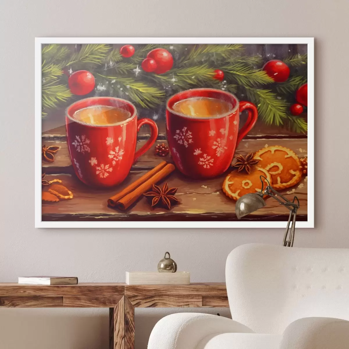 Poster Tassen Tee zwischen festlichen Zweigen Nr f42164
