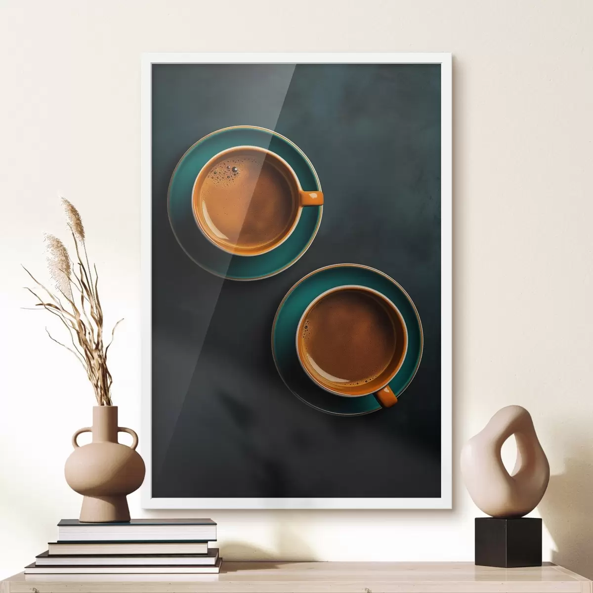 Poster Zwei Tassen Kaffee auf dunklem Hintergrund Nr f42190