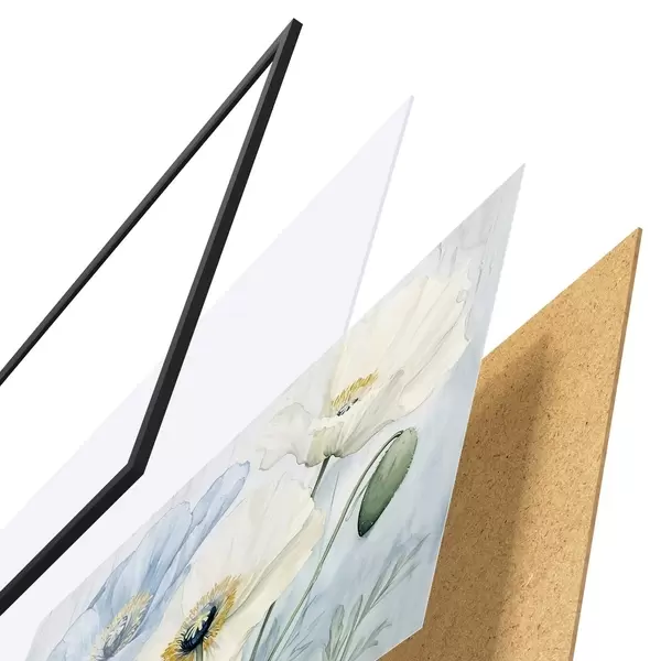 Das Poster besteht aus einem Rahmen, Plexiglas, einem gedruckten Bild und einer Rückwand aus Spanplatten. Dank der Halterungen auf der Rückseite kann das Poster sofort an die Wand gehängt werden.