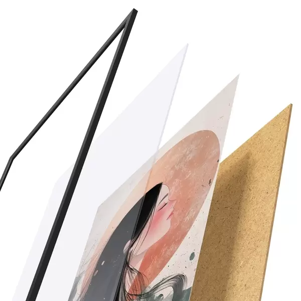 Das Poster besteht aus einem Rahmen, Plexiglas, einem gedruckten Bild und einer Rückwand aus Spanplatten. Dank der Halterungen auf der Rückseite kann das Poster sofort an die Wand gehängt werden.
