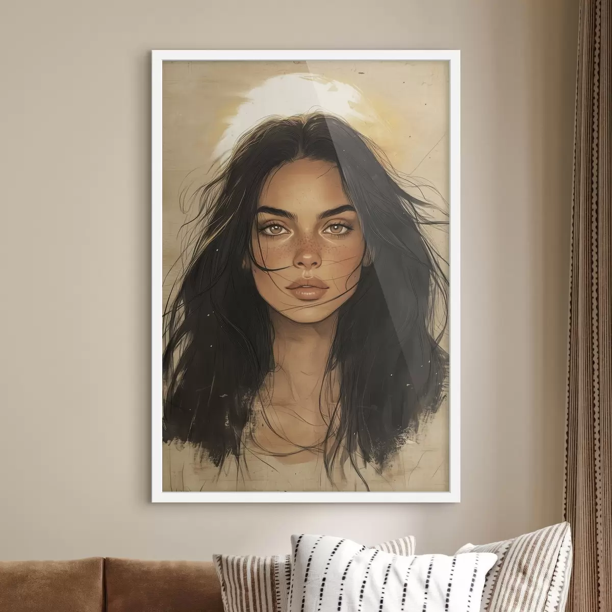 Poster Frau Porträt, Tribal-Stil, beige Farben Nr f42197