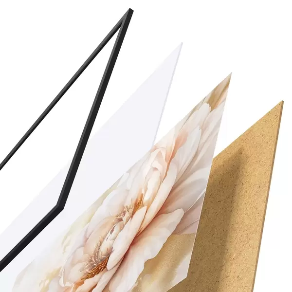 Das Poster besteht aus einem Rahmen, Plexiglas, einem gedruckten Bild und einer Rückwand aus Spanplatten. Dank der Halterungen auf der Rückseite kann das Poster sofort an die Wand gehängt werden.