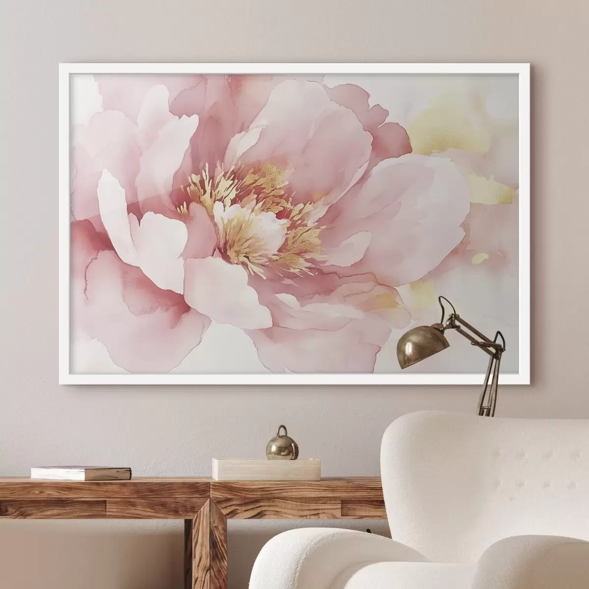 Poster Rosa Pfingstrose Blume, Aquarell-Stil f42203