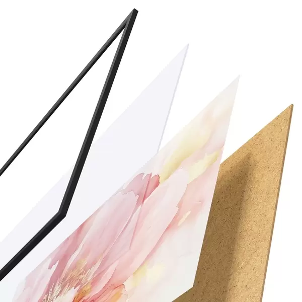 Das Poster besteht aus einem Rahmen, Plexiglas, einem gedruckten Bild und einer Rückwand aus Spanplatten. Dank der Halterungen auf der Rückseite kann das Poster sofort an die Wand gehängt werden.