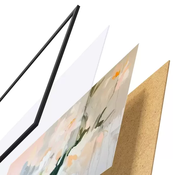 Das Poster besteht aus einem Rahmen, Plexiglas, einem gedruckten Bild und einer Rückwand aus Spanplatten. Dank der Halterungen auf der Rückseite kann das Poster sofort an die Wand gehängt werden.
