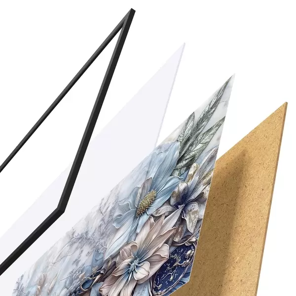 Das Poster besteht aus einem Rahmen, Plexiglas, einem gedruckten Bild und einer Rückwand aus Spanplatten. Dank der Halterungen auf der Rückseite kann das Poster sofort an die Wand gehängt werden.