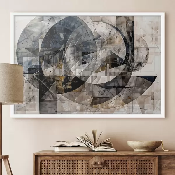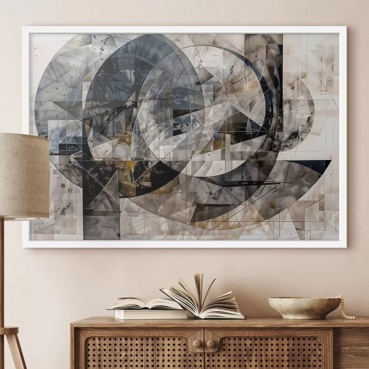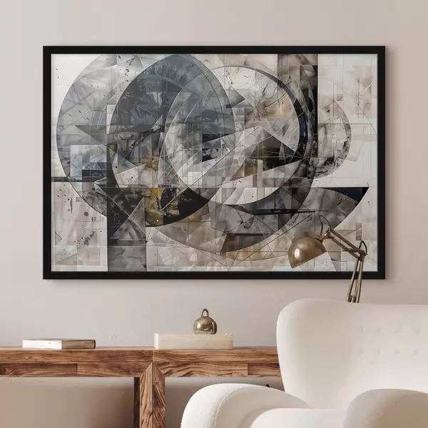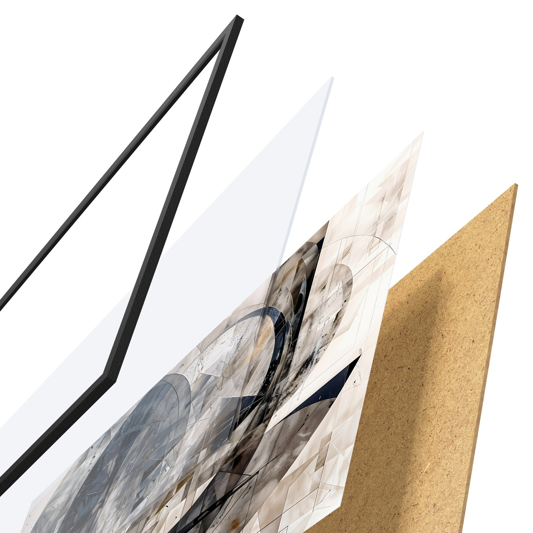 Poster Eine abstrakte moderne geometrische Komposition mit sich überschneidenden Formen und Druck in Grau-, Schwarz- und Beigetönen Nr f42212