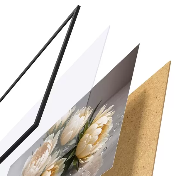 Das Poster besteht aus einem Rahmen, Plexiglas, einem gedruckten Bild und einer Rückwand aus Spanplatten. Dank der Halterungen auf der Rückseite kann das Poster sofort an die Wand gehängt werden.