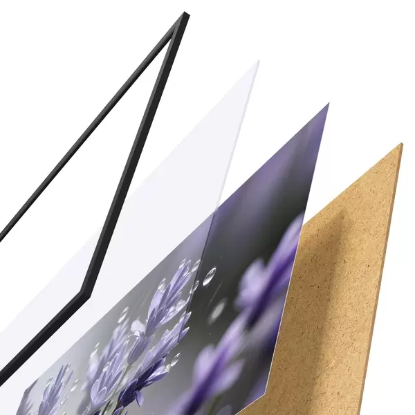 Das Poster besteht aus einem Rahmen, Plexiglas, einem gedruckten Bild und einer Rückwand aus Spanplatten. Dank der Halterungen auf der Rückseite kann das Poster sofort an die Wand gehängt werden.