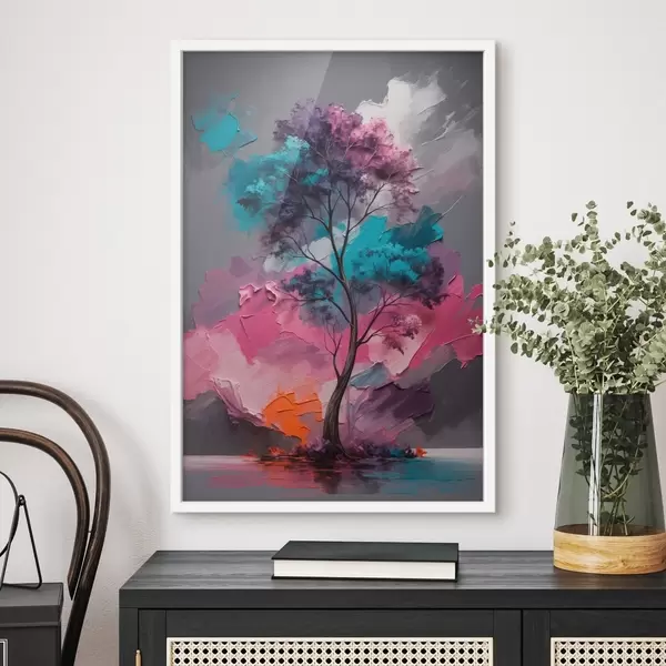 Poster Baum auf rosa-grauem Hintergrund Nr f42262