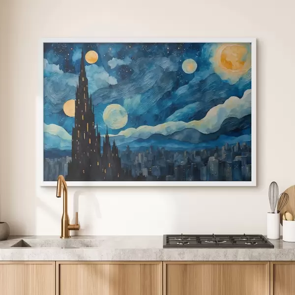 Poster Nacht Stadt in Ölgemälde Stil Nr f42268