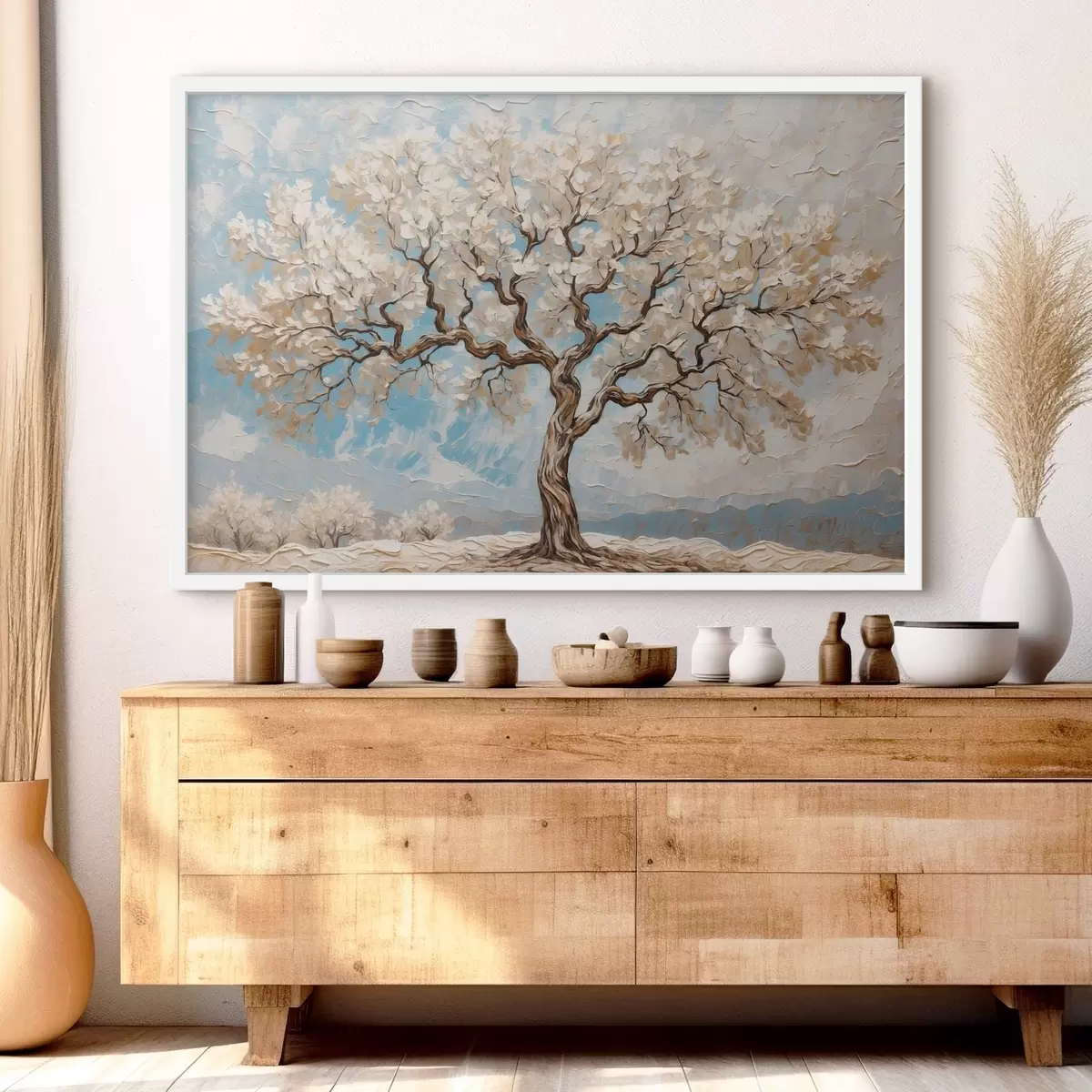 Poster Weißer Baum auf blau-weißem Hintergrund Nr f42275