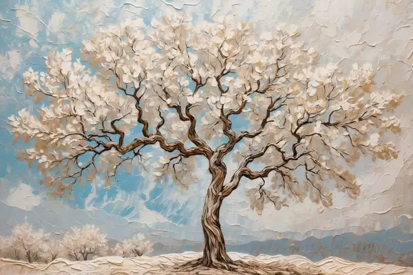Poster Weißer Baum auf blau-weißem Hintergrund f42275