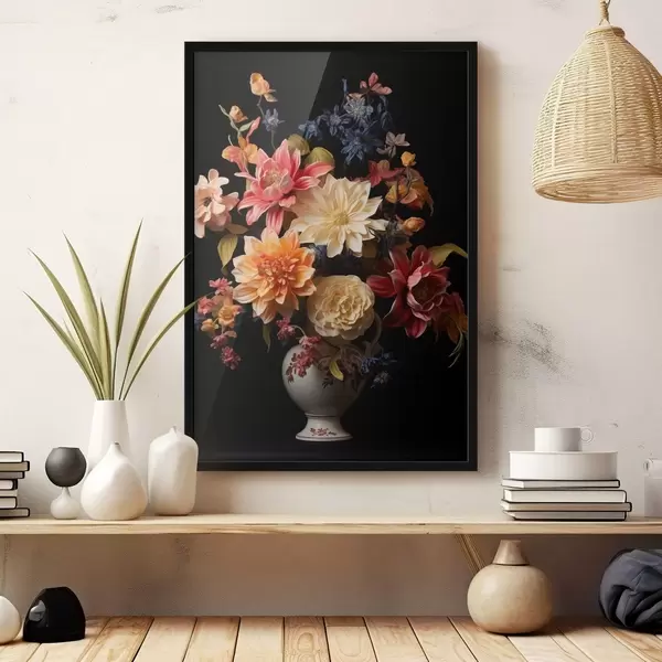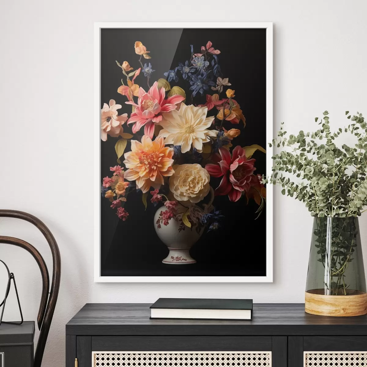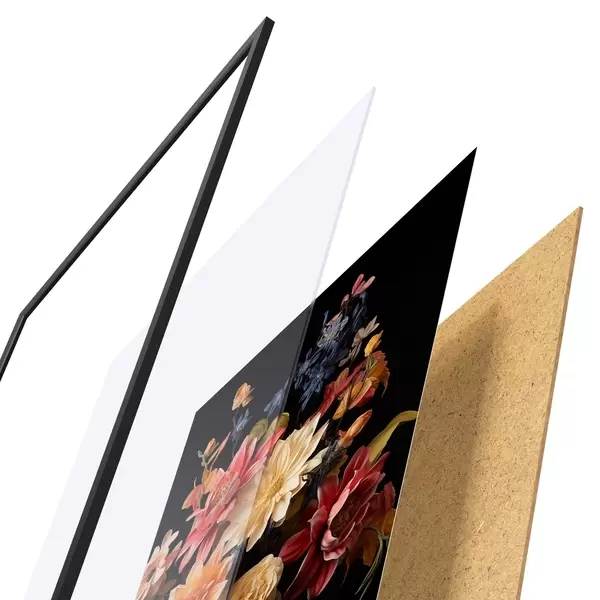 Das Poster besteht aus einem Rahmen, Plexiglas, einem gedruckten Bild und einer Rückwand aus Spanplatten. Dank der Halterungen auf der Rückseite kann das Poster sofort an die Wand gehängt werden.