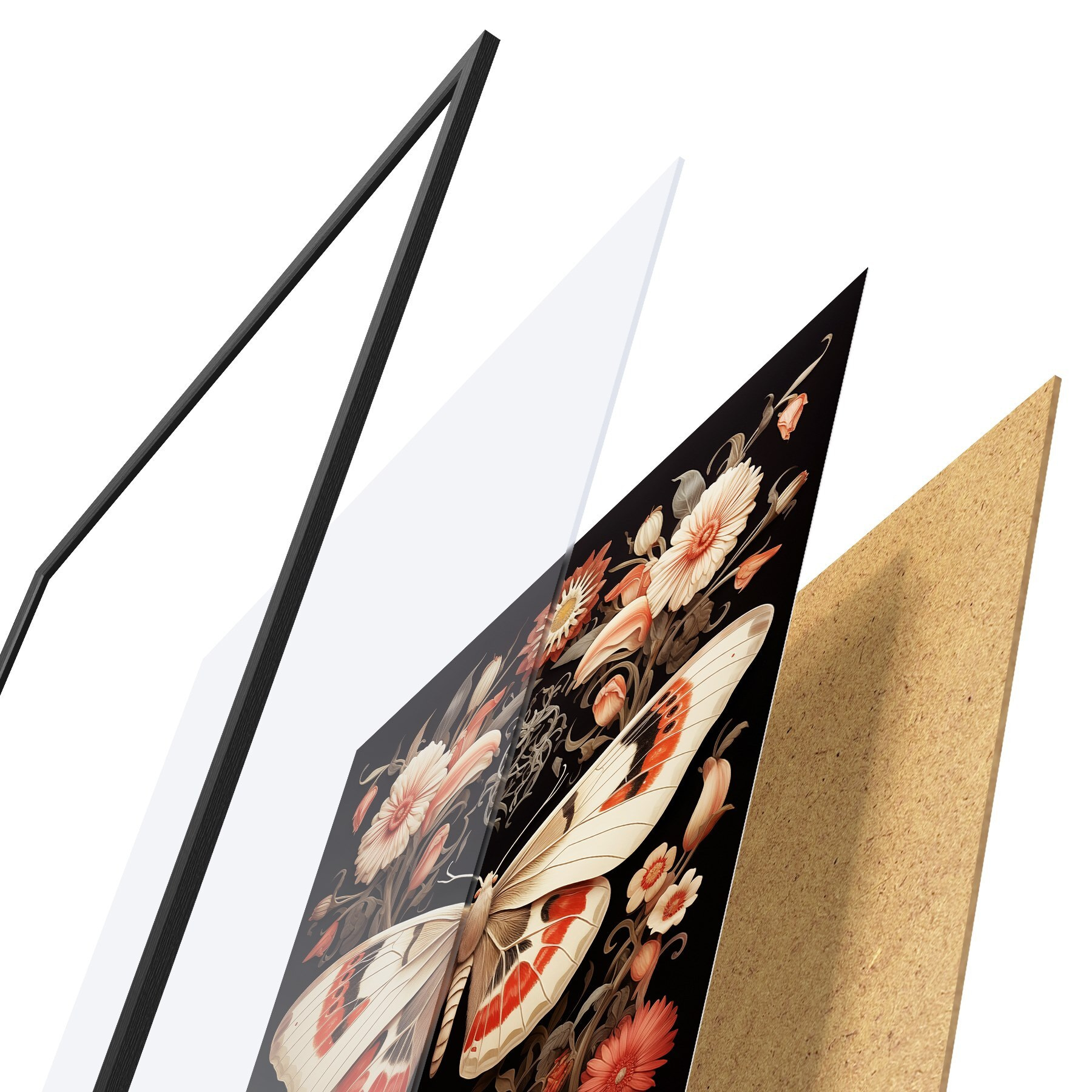 Das Poster besteht aus einem Rahmen, Plexiglas, einem gedruckten Bild und einer Rückwand aus Spanplatten. Dank der Halterungen auf der Rückseite kann das Poster sofort an die Wand gehängt werden.