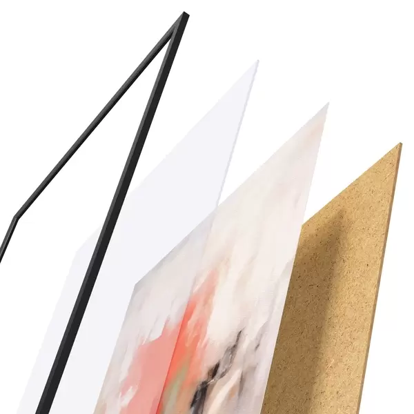 Das Poster besteht aus einem Rahmen, Plexiglas, einem gedruckten Bild und einer Rückwand aus Spanplatten. Dank der Halterungen auf der Rückseite kann das Poster sofort an die Wand gehängt werden.