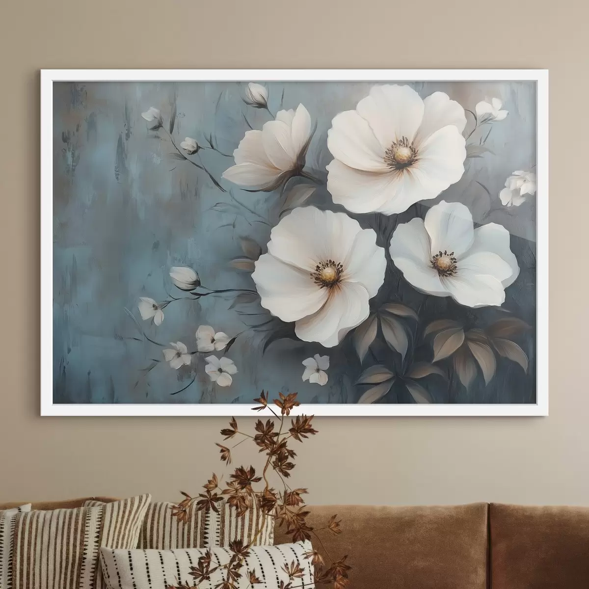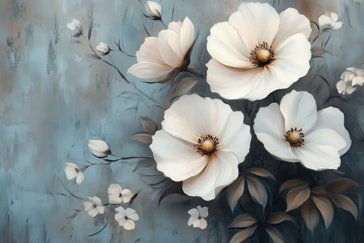 Poster Weiße Blumen auf blauem Hintergrund Nr f42319