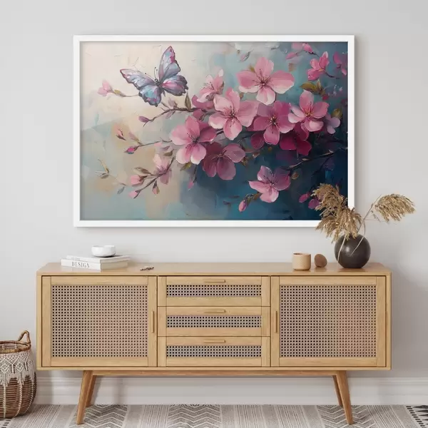 Poster Rosa Blumen und Schmetterling Nr f42320