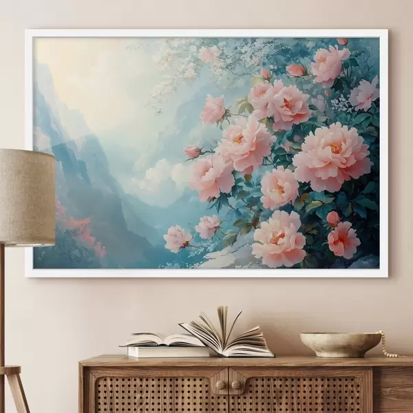 Poster Blaue Berge und Blumen im Vordergrund Nr f42324