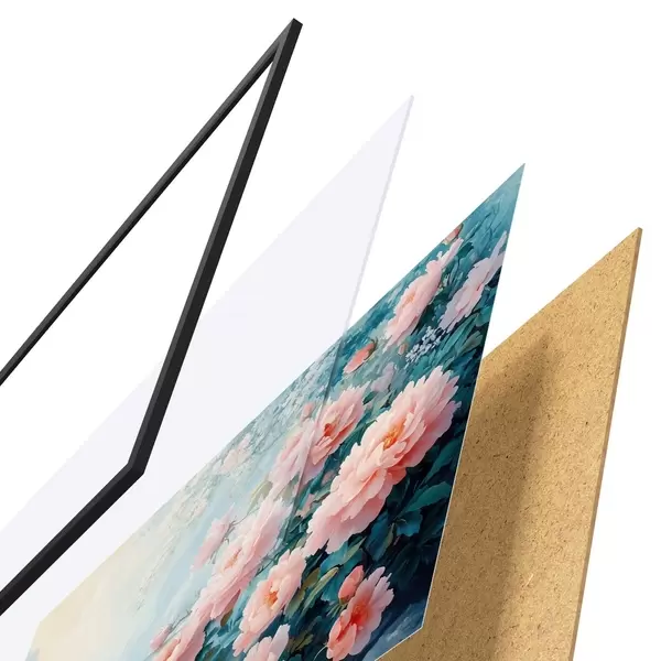 Das Poster besteht aus einem Rahmen, Plexiglas, einem gedruckten Bild und einer Rückwand aus Spanplatten. Dank der Halterungen auf der Rückseite kann das Poster sofort an die Wand gehängt werden.
