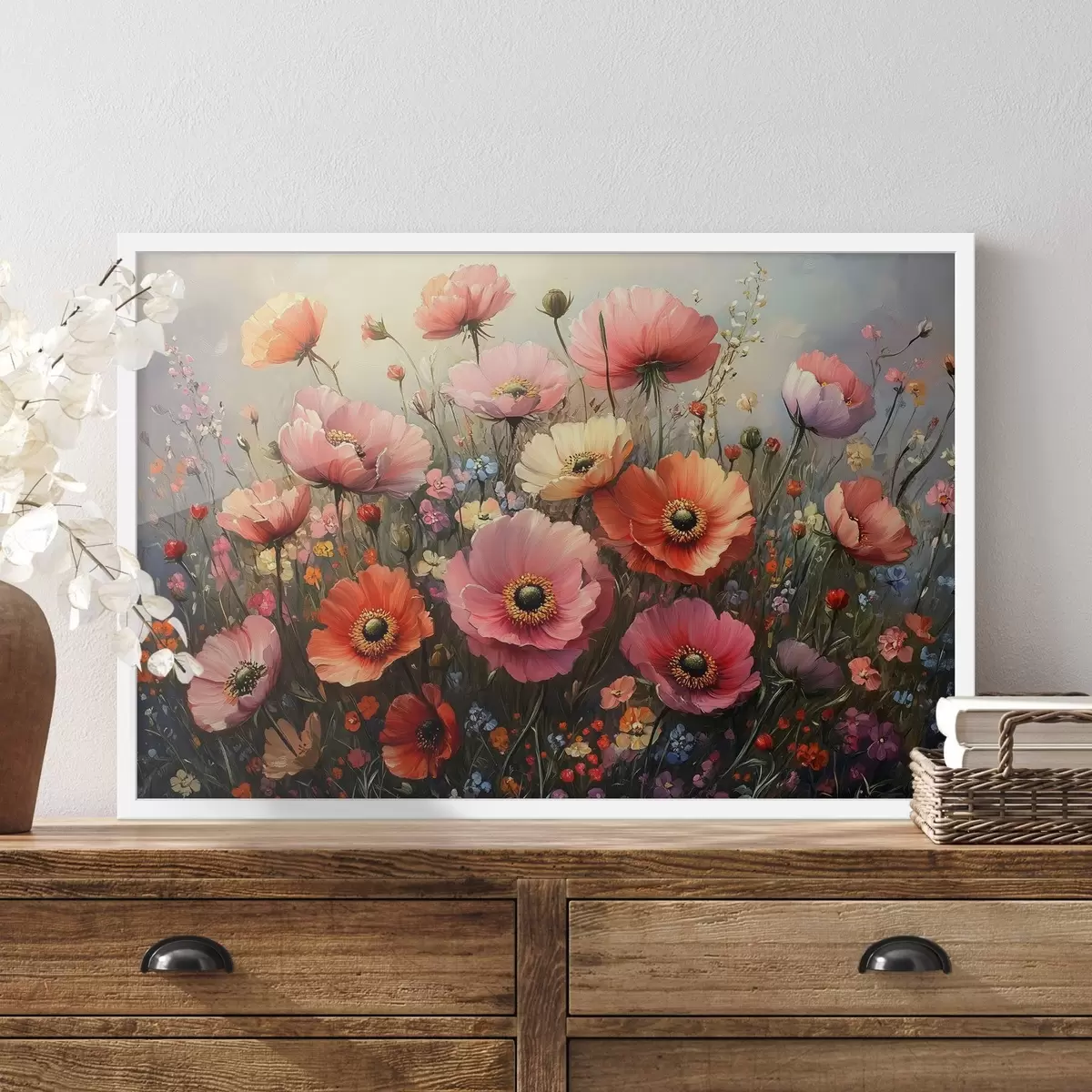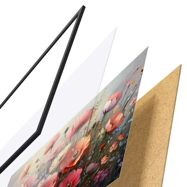 Das Poster besteht aus einem Rahmen, Plexiglas, einem gedruckten Bild und einer Rückwand aus Spanplatten. Dank der Halterungen auf der Rückseite kann das Poster sofort an die Wand gehängt werden.