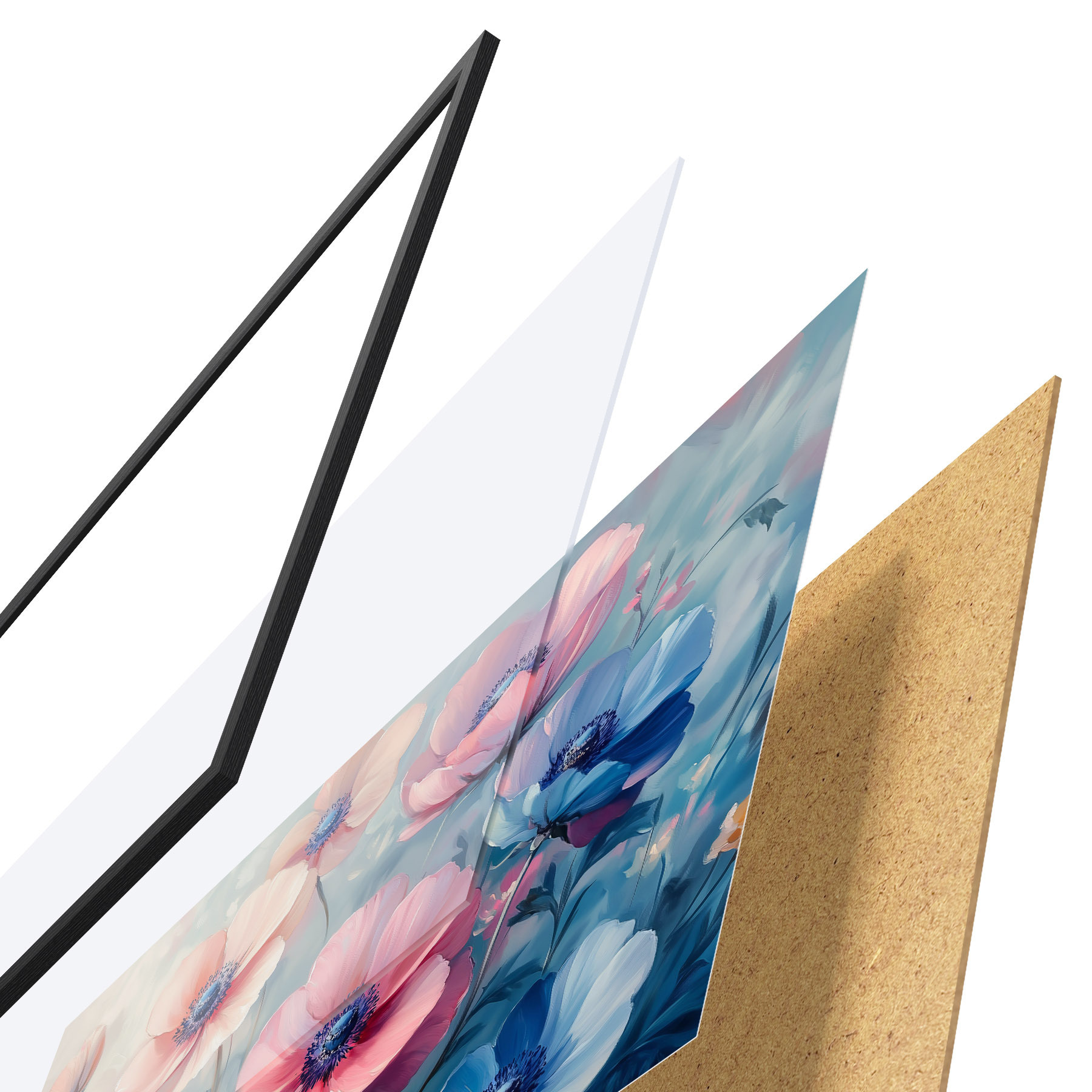 Das Poster besteht aus einem Rahmen, Plexiglas, einem gedruckten Bild und einer Rückwand aus Spanplatten. Dank der Halterungen auf der Rückseite kann das Poster sofort an die Wand gehängt werden.