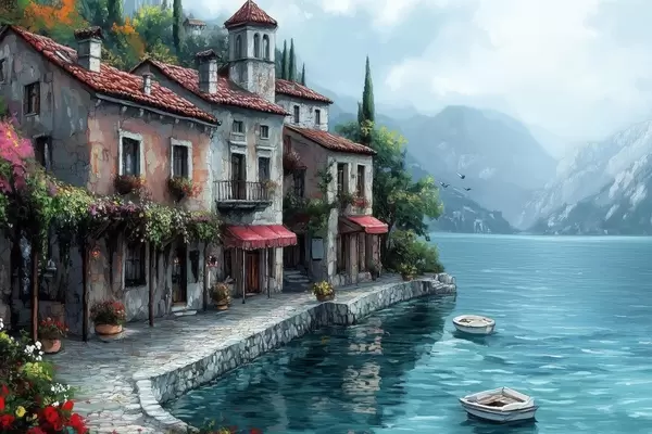 Poster Haus oberhalb des Sees in den Bergen Nr f42334
