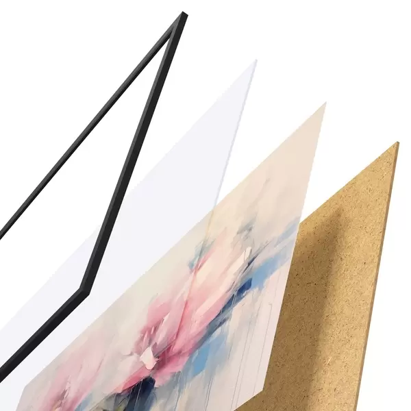 Das Poster besteht aus einem Rahmen, Plexiglas, einem gedruckten Bild und einer Rückwand aus Spanplatten. Dank der Halterungen auf der Rückseite kann das Poster sofort an die Wand gehängt werden.
