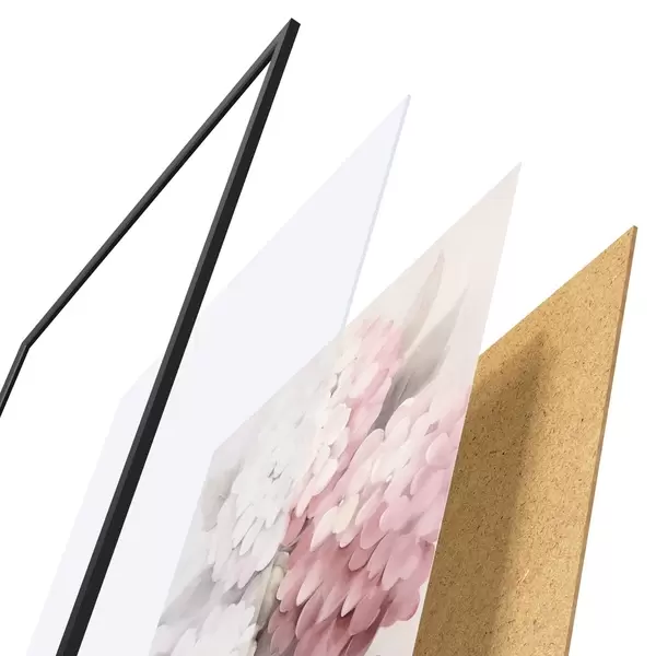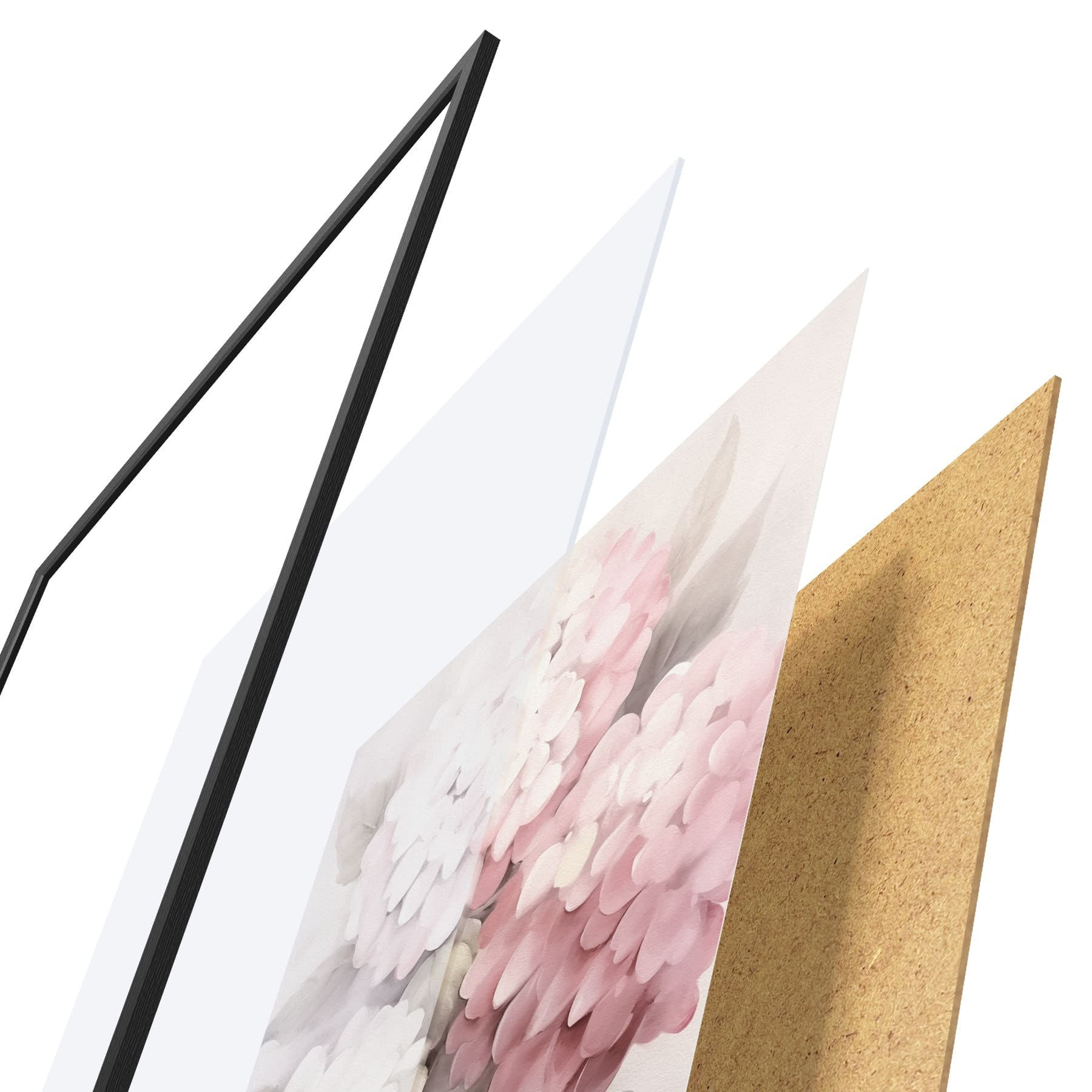 Das Poster besteht aus einem Rahmen, Plexiglas, einem gedruckten Bild und einer Rückwand aus Spanplatten. Dank der Halterungen auf der Rückseite kann das Poster sofort an die Wand gehängt werden.