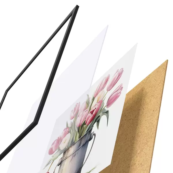 Das Poster besteht aus einem Rahmen, Plexiglas, einem gedruckten Bild und einer Rückwand aus Spanplatten. Dank der Halterungen auf der Rückseite kann das Poster sofort an die Wand gehängt werden.