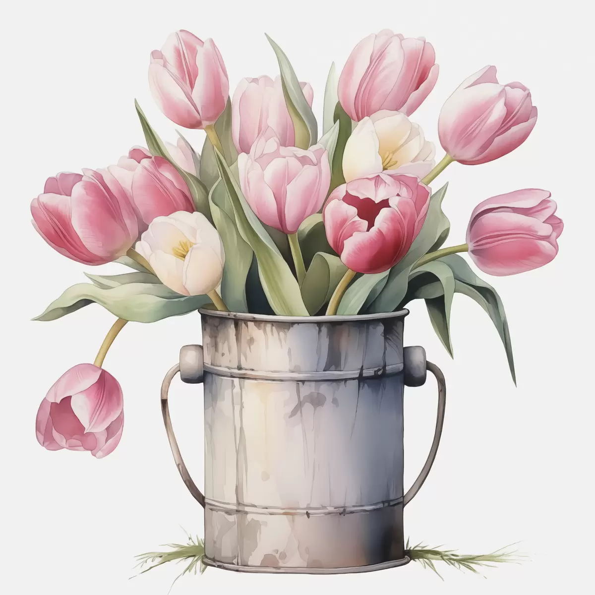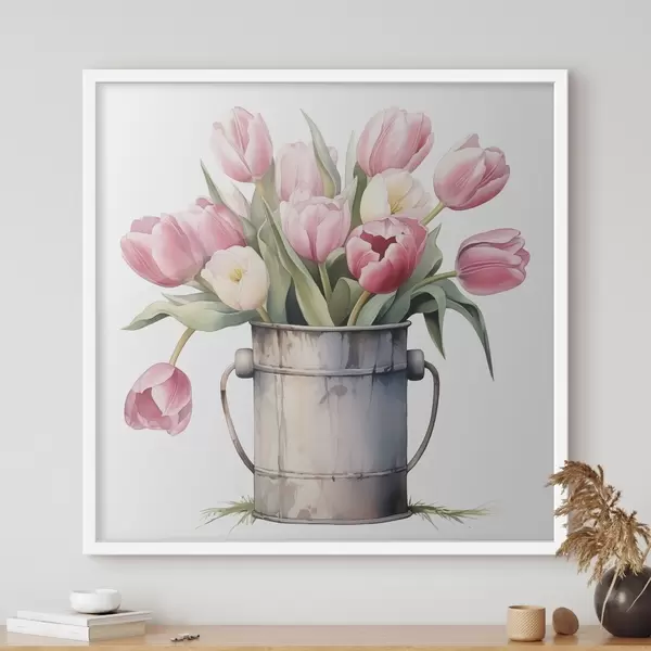 Poster Blumenstrauß von Tulpen in einem Eimer Nachahmung von Aquarell f42353