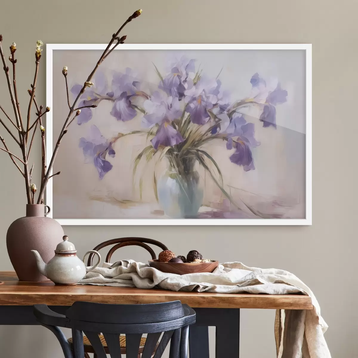 Poster Schwertlilien in einer Vase Nachahmung der Malerei f42357