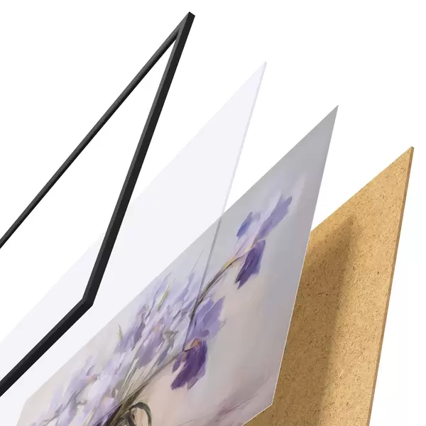 Das Poster besteht aus einem Rahmen, Plexiglas, einem gedruckten Bild und einer Rückwand aus Spanplatten. Dank der Halterungen auf der Rückseite kann das Poster sofort an die Wand gehängt werden.