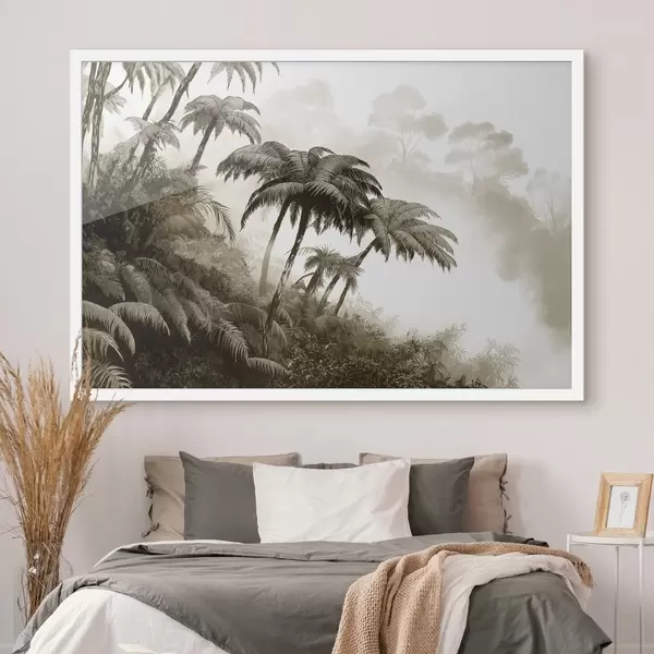 Poster Dschungel Wald im Nebel, Palmen, Natur, beige Farben Nr f42372