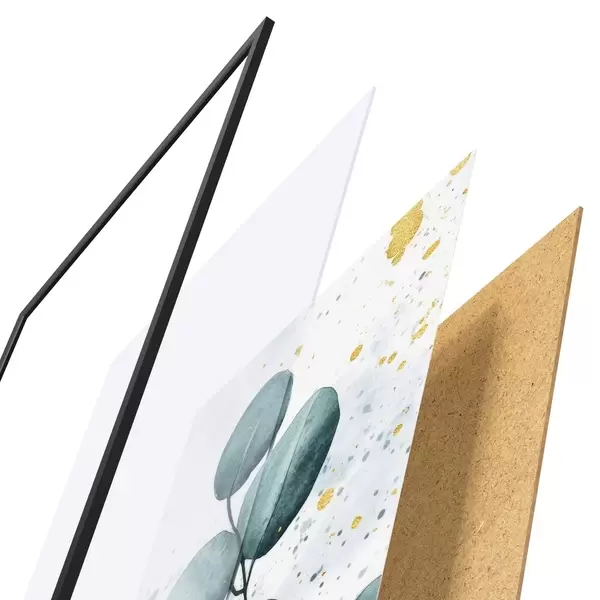 Das Poster besteht aus einem Rahmen, Plexiglas, einem gedruckten Bild und einer Rückwand aus Spanplatten. Dank der Halterungen auf der Rückseite kann das Poster sofort an die Wand gehängt werden.