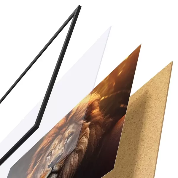 Das Poster besteht aus einem Rahmen, Plexiglas, einem gedruckten Bild und einer Rückwand aus Spanplatten. Dank der Halterungen auf der Rückseite kann das Poster sofort an die Wand gehängt werden.