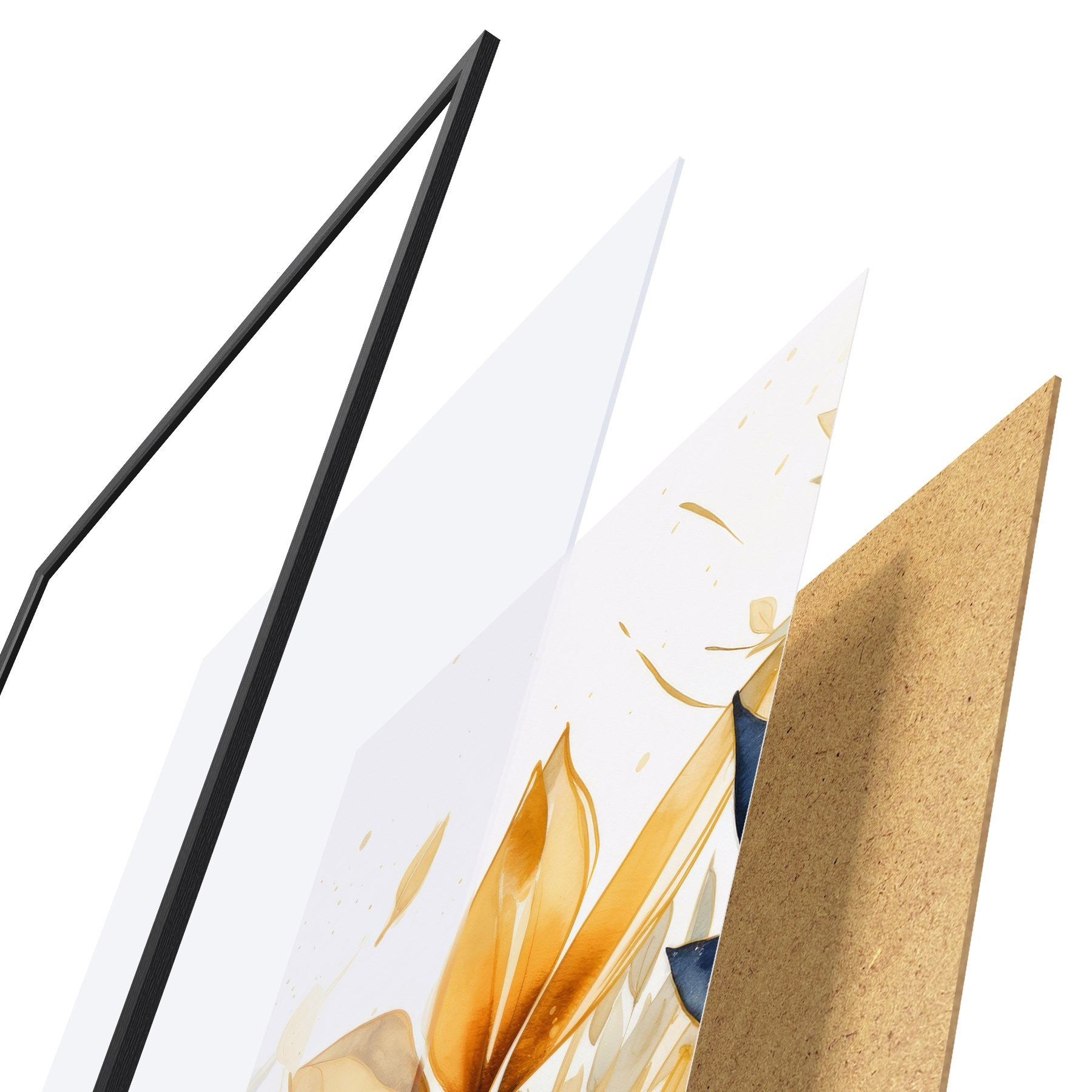 Das Poster besteht aus einem Rahmen, Plexiglas, einem gedruckten Bild und einer Rückwand aus Spanplatten. Dank der Halterungen auf der Rückseite kann das Poster sofort an die Wand gehängt werden.