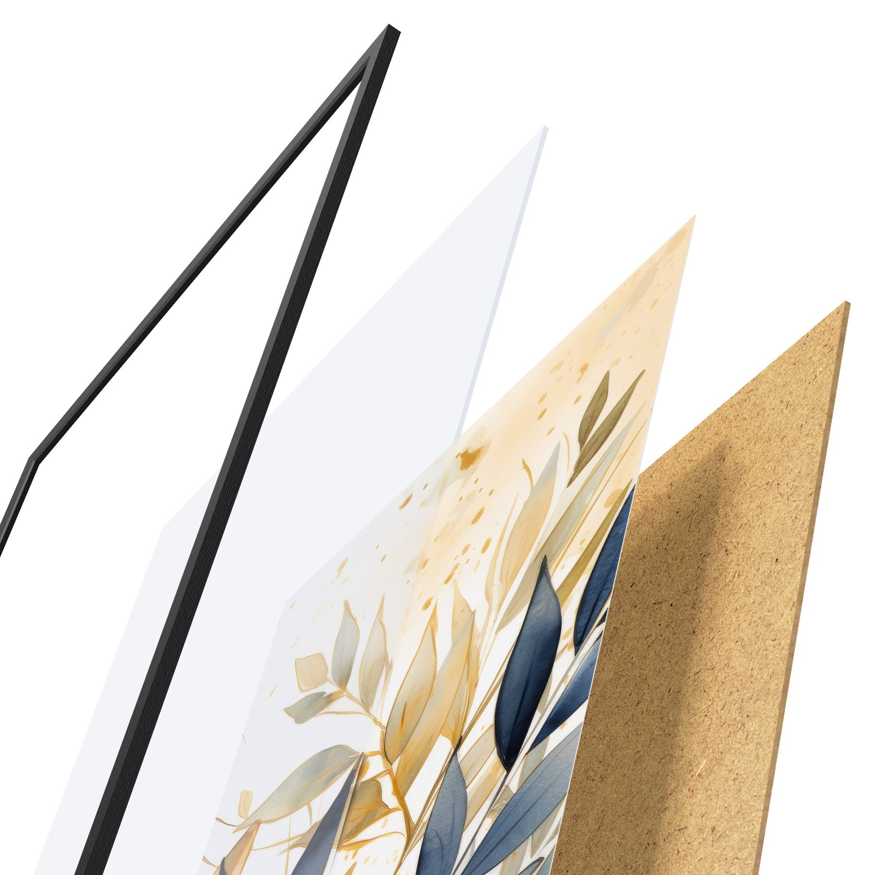 Das Poster besteht aus einem Rahmen, Plexiglas, einem gedruckten Bild und einer Rückwand aus Spanplatten. Dank der Halterungen auf der Rückseite kann das Poster sofort an die Wand gehängt werden.