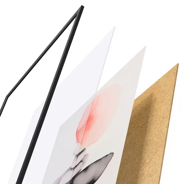 Das Poster besteht aus einem Rahmen, Plexiglas, einem gedruckten Bild und einer Rückwand aus Spanplatten. Dank der Halterungen auf der Rückseite kann das Poster sofort an die Wand gehängt werden.