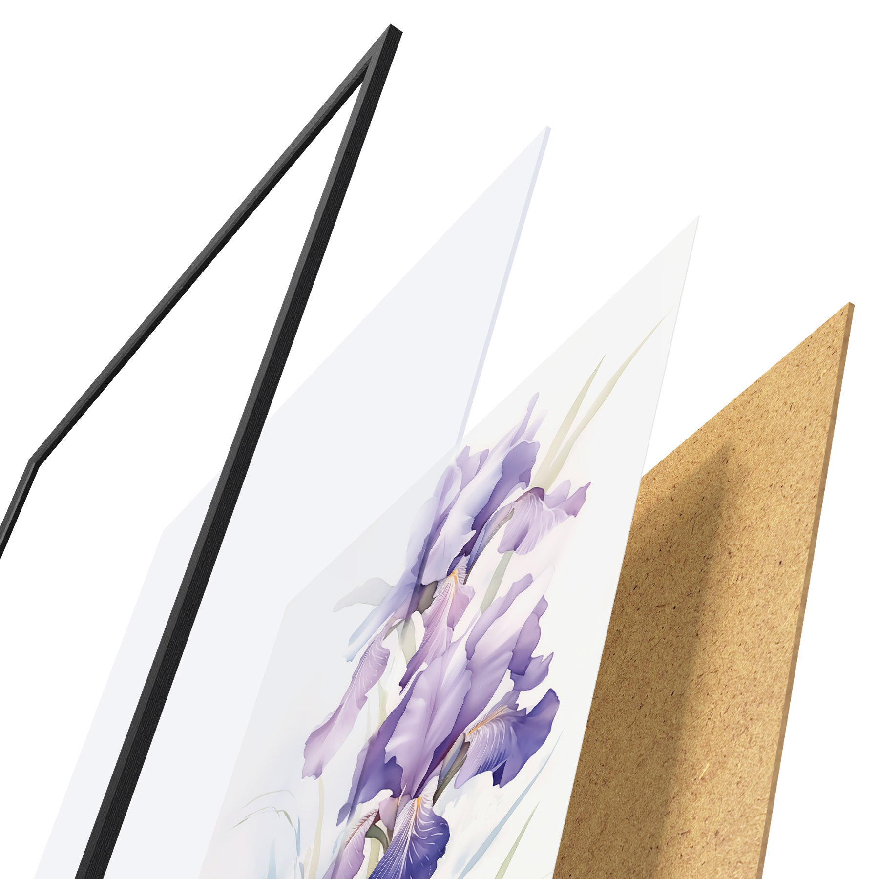 Das Poster besteht aus einem Rahmen, Plexiglas, einem gedruckten Bild und einer Rückwand aus Spanplatten. Dank der Halterungen auf der Rückseite kann das Poster sofort an die Wand gehängt werden.