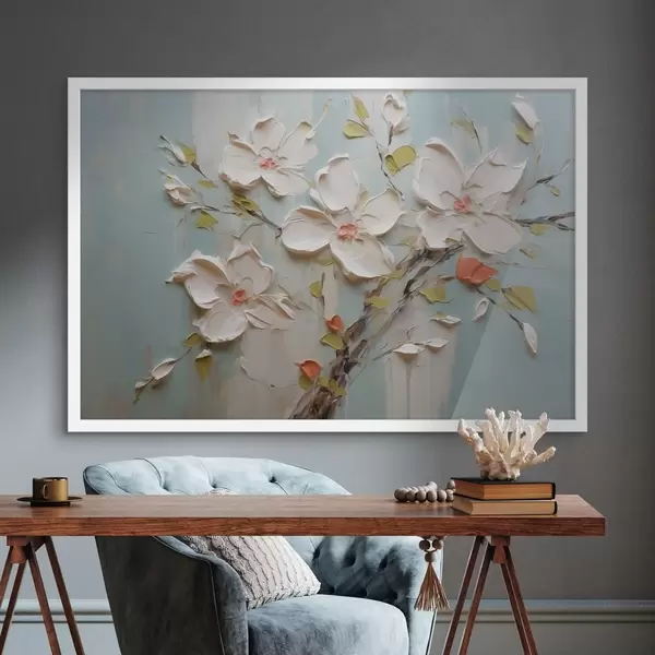 Poster Weiße Blumen Nachahmung Farbe Striche Nr f42417