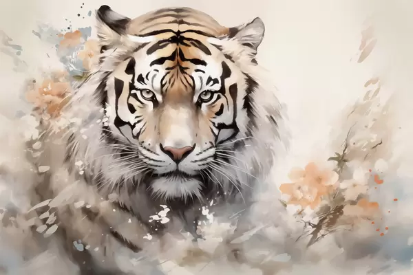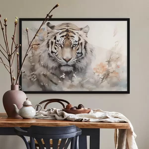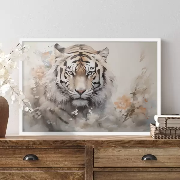 Poster Abstraktes Porträt eines Tigers zwischen Flecken Nr f42421