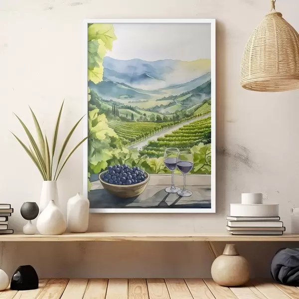 Poster Gpape Höfe, Landschaften im Aquarellstil, Weingläser f42444