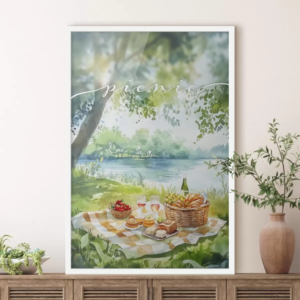 Poster Picknick-Ästhetik, Sommer Natur, See, romantisch, Aquarell-Stil Nr f42450