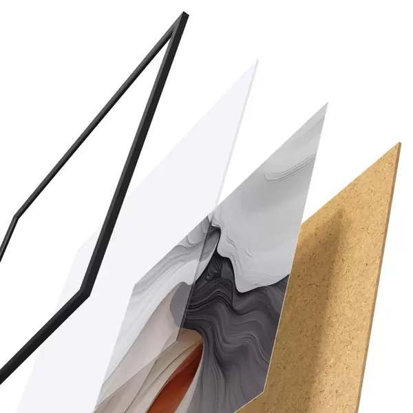 Das Poster besteht aus einem Rahmen, Plexiglas, einem gedruckten Bild und einer Rückwand aus Spanplatten. Dank der Halterungen auf der Rückseite kann das Poster sofort an die Wand gehängt werden.