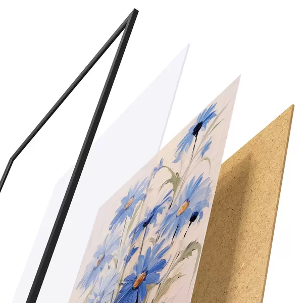 Das Poster besteht aus einem Rahmen, Plexiglas, einem gedruckten Bild und einer Rückwand aus Spanplatten. Dank der Halterungen auf der Rückseite kann das Poster sofort an die Wand gehängt werden.