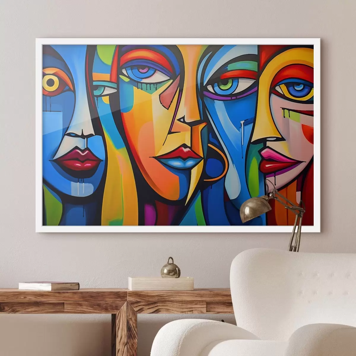 Poster Abstraktes Bild von Gesichtern mit hellen geometrischen Formen f42473